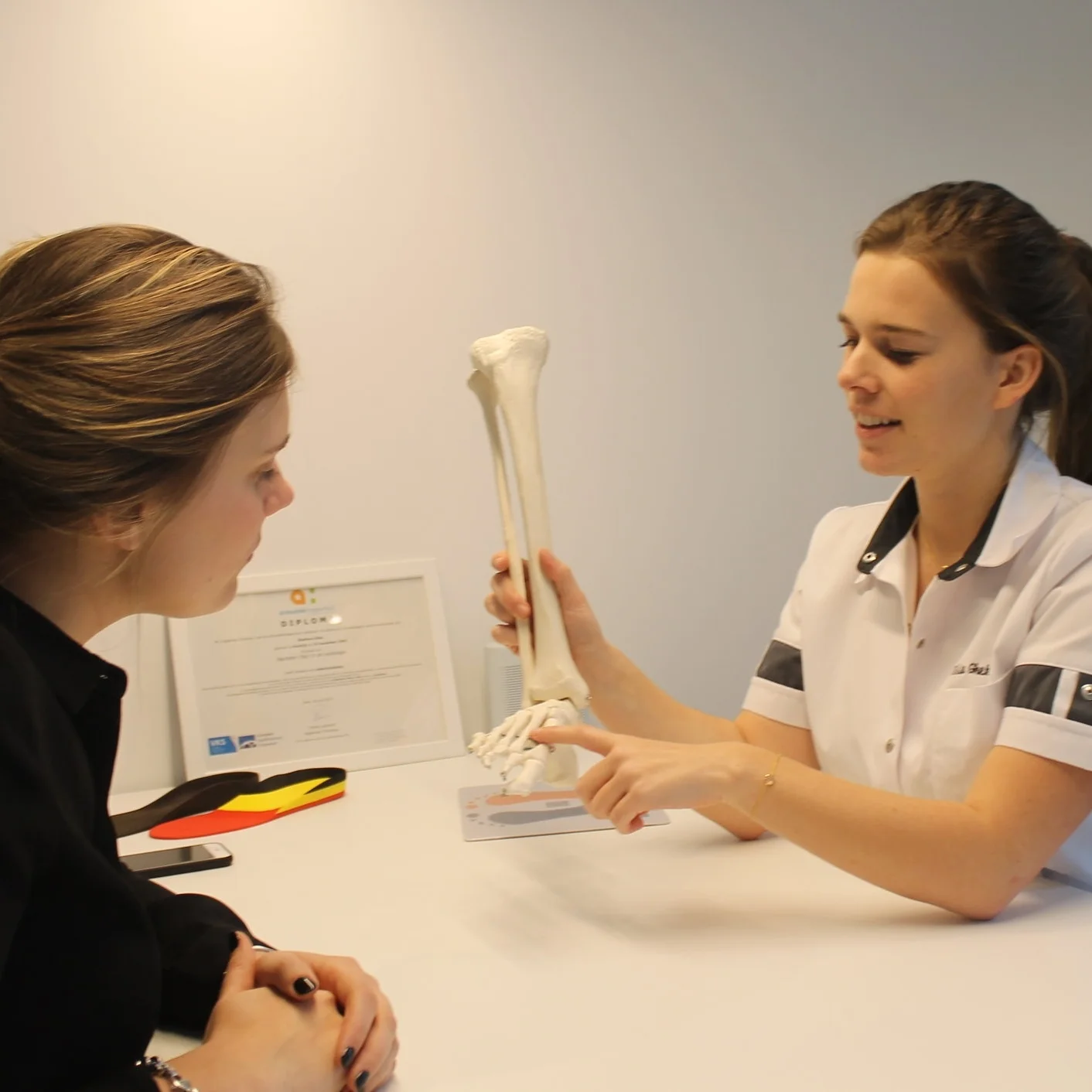 Tot slot worden de zolen afgeleverd aan de patiënt. Dit perfect op maat en met alle individueel aangepaste correctie die bleken uit de testen. Op dit moment wordt ook nagekeken of ze goed in de schoen passen en indien nodig worden ze bijgeslepen.