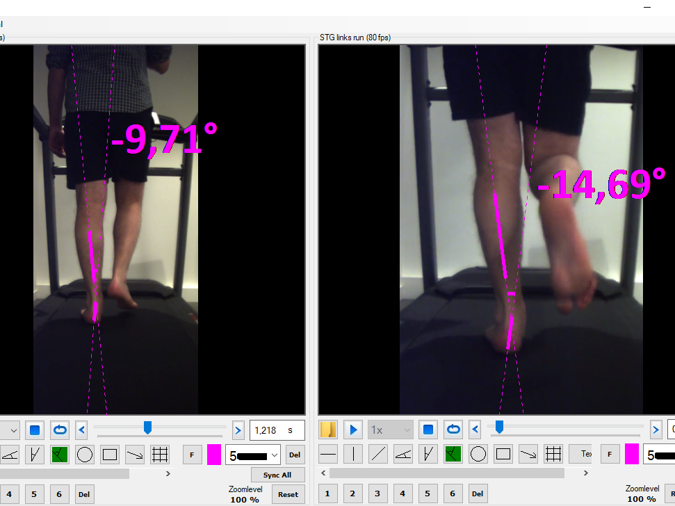 Daarna wordt een gang- en loopanalyse afgenomen. Hierbij filmen we de patiënt met een high speed camera en zullen we aan de hand van aangepaste software nagaan of er dynamische afwijkingen zijn.